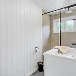 La villa dispone de un cuarto de baño con una bañera de hidromasaje, una ducha y una lavadora. También hay una secadora.
